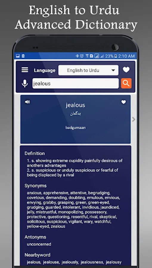• English & Urdu Dictionary app is a free app and have some minor ads, so you will not need to worry about that.