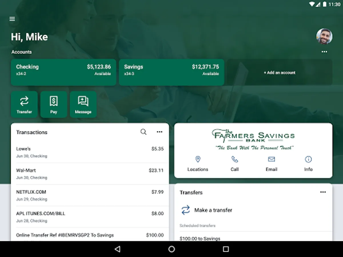 To use the Farmers Savings Bank OH app, you must be enrolled as a The Farmers Savings Bank digital banking user. If you currently use our Internet Banking, simply download the app, launch it, and login with the same Internet Banking credentials.