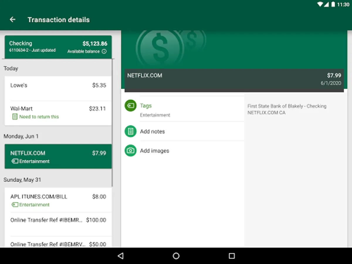 -Keep your transactions organized by allowing you to add tags, notes and photos of receipts and checks.