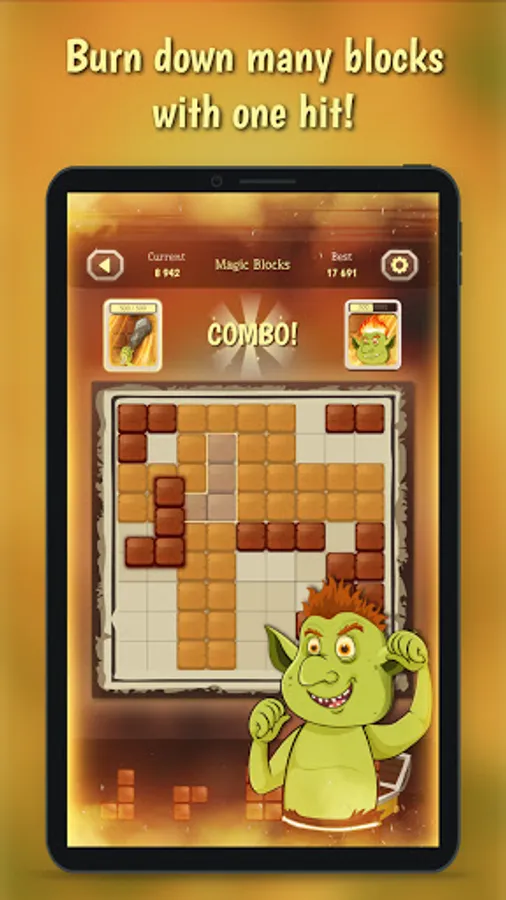 You start with the default hero – orcus that will guide you through the game, help you clear the board by destroying the blocks and clearing up the field.