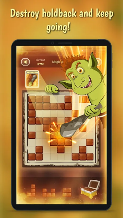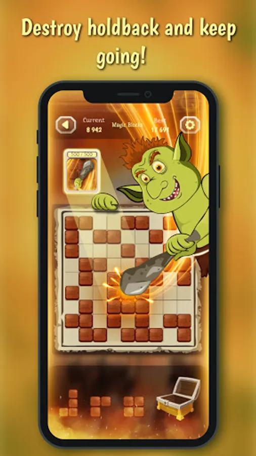 1. Drag the bricks to full lines on the grid vertically or horizontally, or to fill the blocks and the orcus will help you clear the grid so you can continue the fun game.