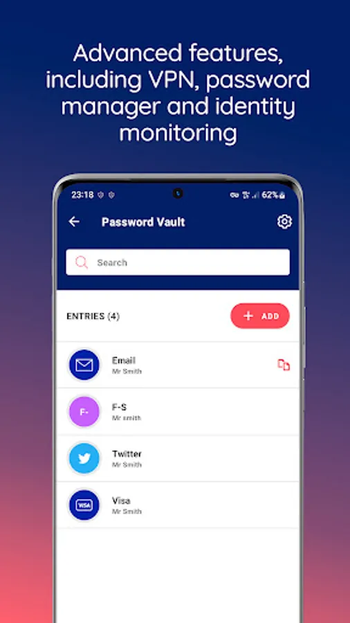 - Password manager: Generates and manages secure passwords and safely stores credit card details.