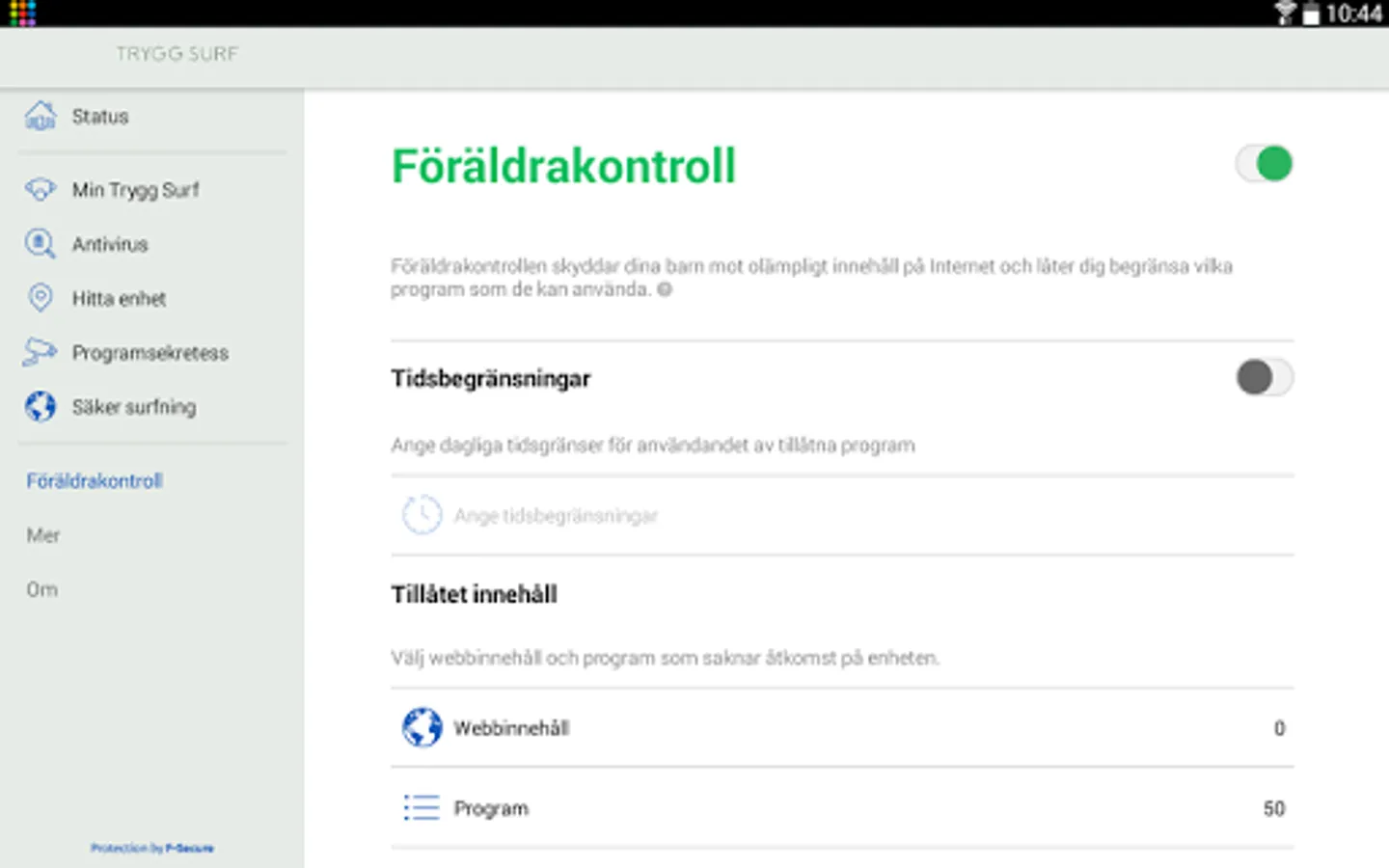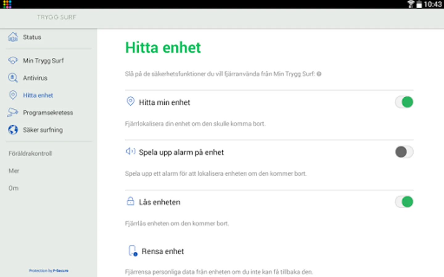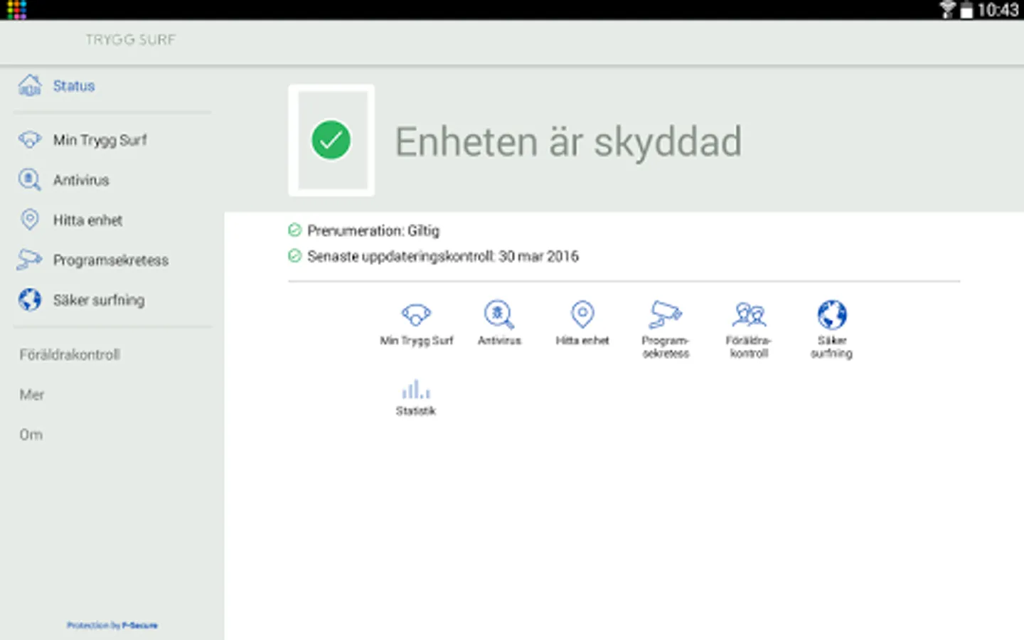 Tele2 offers a complete security program so that you can feel safe when you or your children surf. The service includes surf protection, bank protection, antivirus and family rules (content filtering and limitation of surfing time).