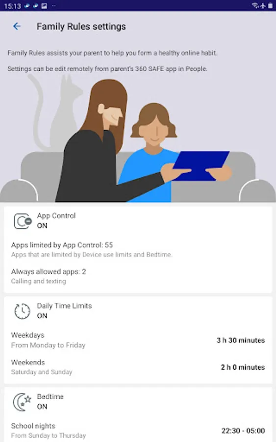 Parental controls help to contain your child access to online includes content filtering, application access control, safe search and setting time limits.