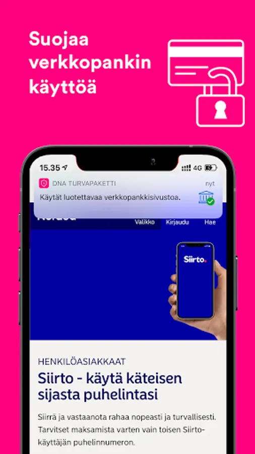DNA Digiturva is protecting your mobile device from viruses, spyware and information theft. The solution also secures your web browsing and allows parents to use Parental control features.