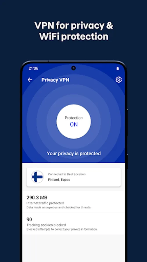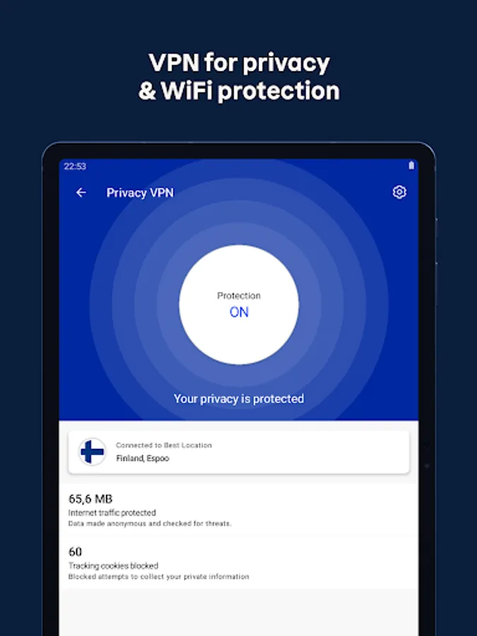 Connect to any WiFi hotspot securely with a VPN and make your browsing private. VPN protects your IP address and blocks tracking. With a VPN you can choose your virtual location and encrypt your traffic for secure and private browsing. Our fast and unlimited VPN is your privacy partner at home and on the go. And it’s super easy to use!