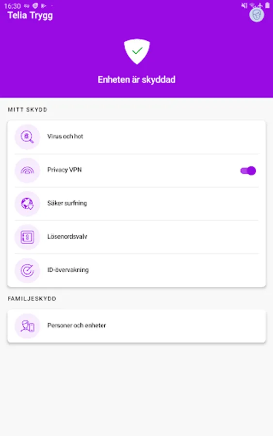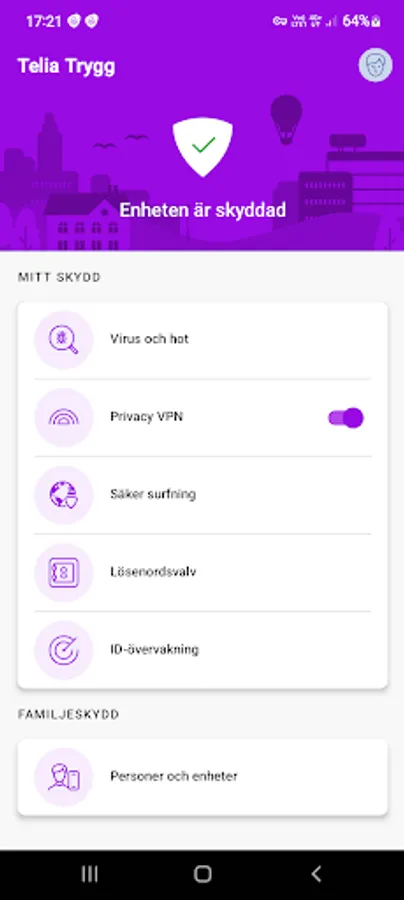 Telia Trygg brings together the best in digital security and enables you to feel safe when you live your digital life. Depending on which package you have from Telia, you get access to different functions.