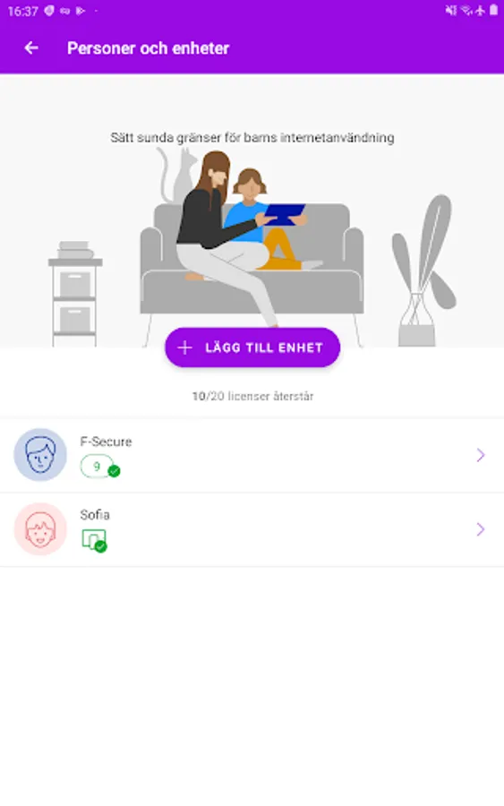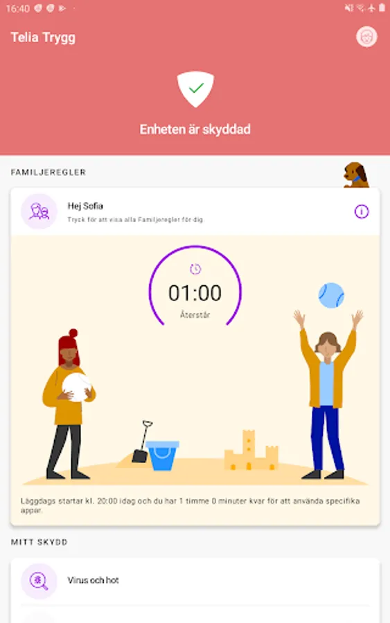 Device administrator rights are required for the application to function and Telia Trygg uses the respective permissions in full compliance with Google Play's policies and with active approval by the end user. The device administrator rights are used for Parental Controls, specifically: