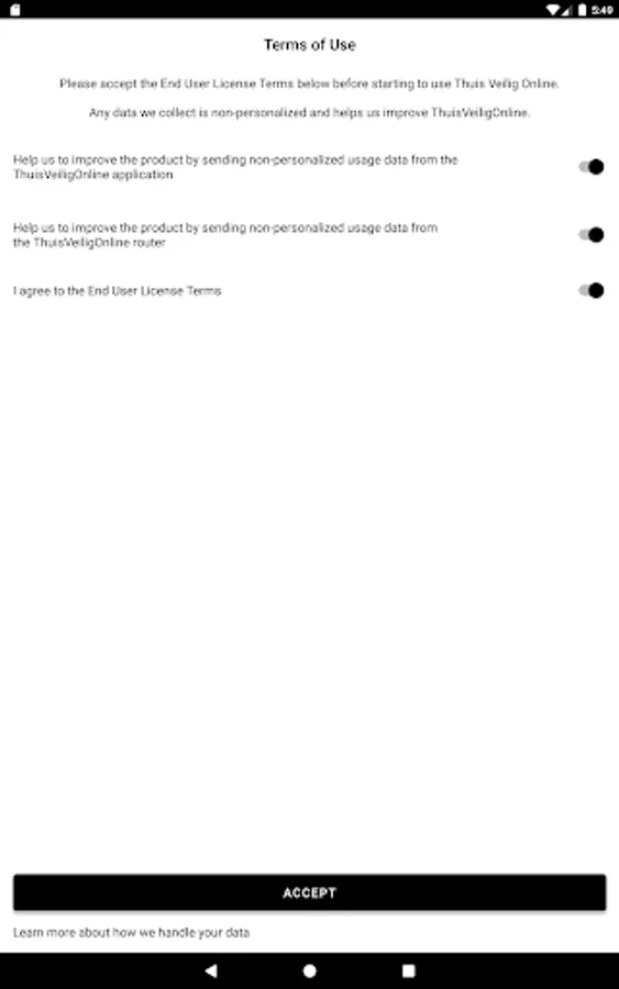 Thuis Veilig Online is advanced smart home security via your modem from Odido (developed by F-Secure). It automatically secures all your devices connected to your home network via your modem and protects against cyber-attacks. Think of devices such as smartphones, laptops, tablets, PCs, smart TVs, game consoles and baby monitors. Both wired and via WiFi. This app is only available for Odido Fixed Internet customers with a suitable router/home gateway.