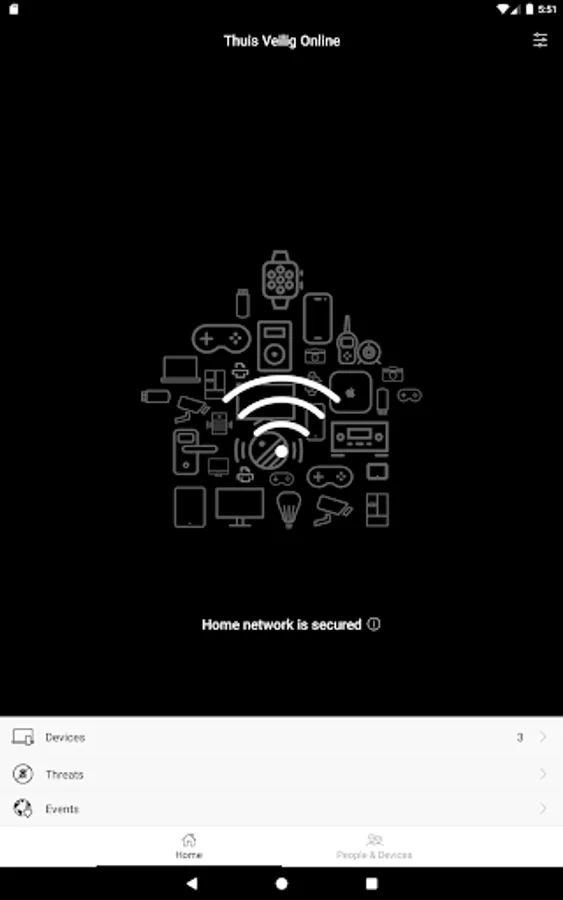 All devices that are connected to your home network via your modem are automatically protected by Thuis Veilig Online. With the Thuis Veilig Online app you can manage the security settings for each device and gain insight into which threats have been fended off.