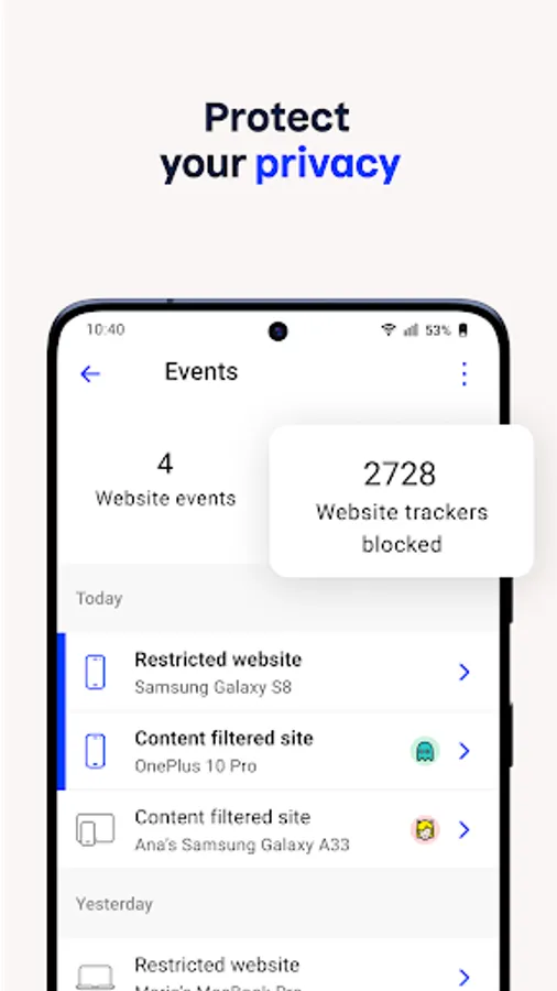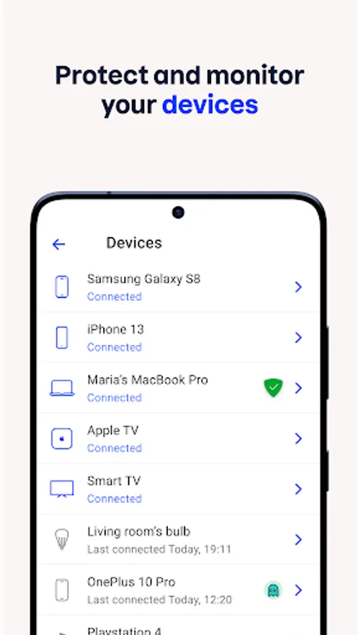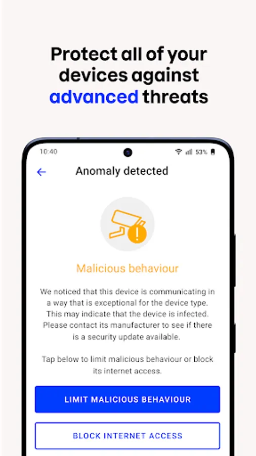 Protect your smart home devices against online threats and hacking. Receive notifications if devices start behaving oddly and block Internet access for those devices.