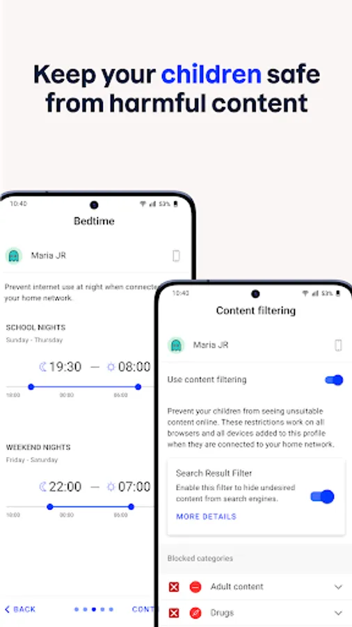 Set healthy boundaries for your children’s time online and protect your children from unsuitable web content with Sense in your router/home gateway.