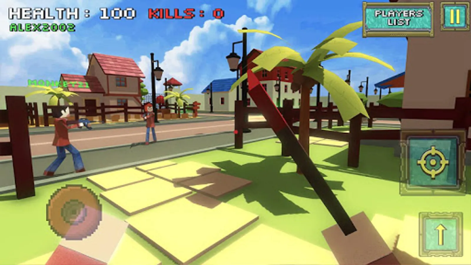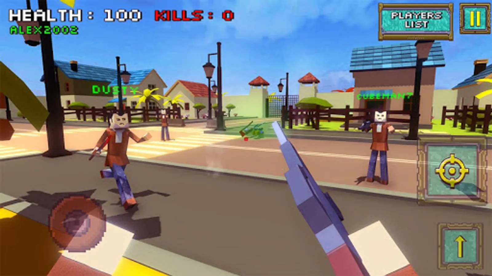 Try to stay alive as long as possible. It's not an easy task, gain more points than your enemies. Beware of enemies with weapons! They can wait for you in the most unexpected places. Make your way to the smallest rooms, climb the roofs of houses. This half-ruined town is not a place to rest. Do search for weapons.