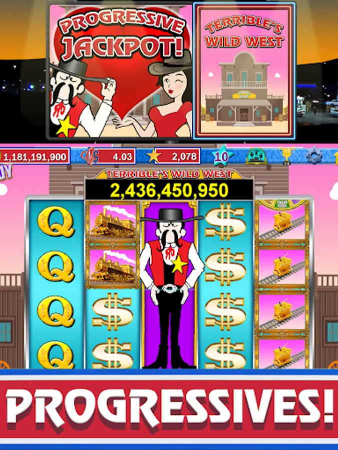 Second, you get Terrible’s Social House with the excitement of Las Vegas right at home! Play exciting Multi-reel, Multi-line SLOT MACHINES or try your hand at Multi-Hand VIDEO POKER, or have a go with new KENO games! Try the “Terrible’s Wild West” slot with a progressive starting at 1 Billion Coins!