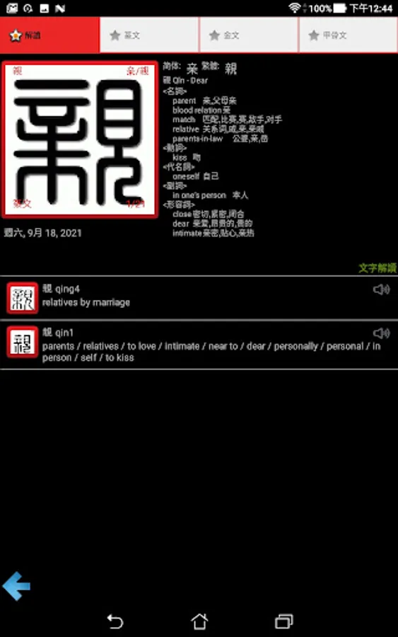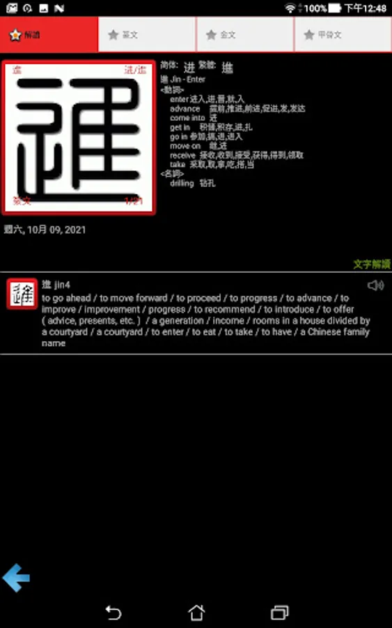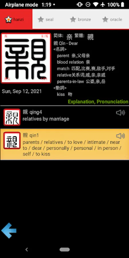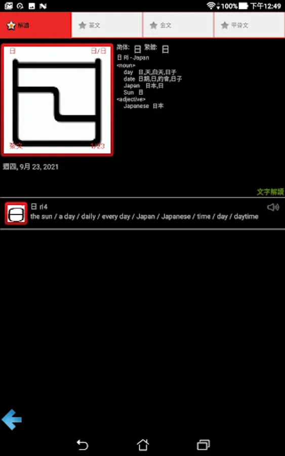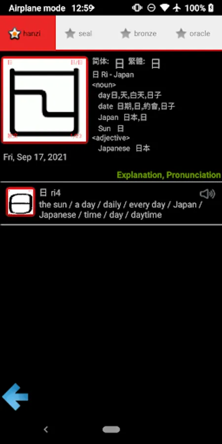 Daily Chinese Character is a Chinese character's learning Tool. You will learn more about Hanzi, Hanja or Kanji with your phone or tablet daily. You will learn about a character's Mandarin Pinyin, its meanings, pronunciations, calligraphy and etymology with ancient Oracle bone, Bronze and Seal scripts.