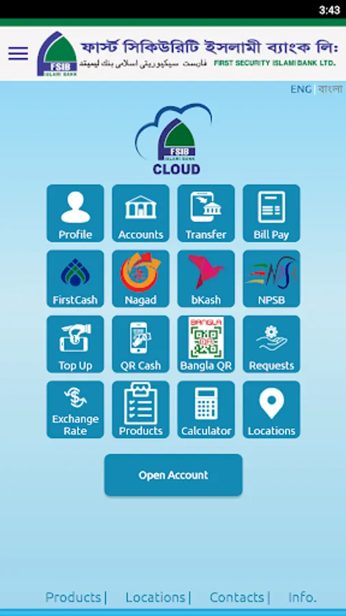 First Security Islami Bank Ltd. does not charge fee for the use of FSIBL CLOUD. Your Mobile Service Provider may charge you as per their data rate. Charges for different transaction will be declared by competent authority by circular.