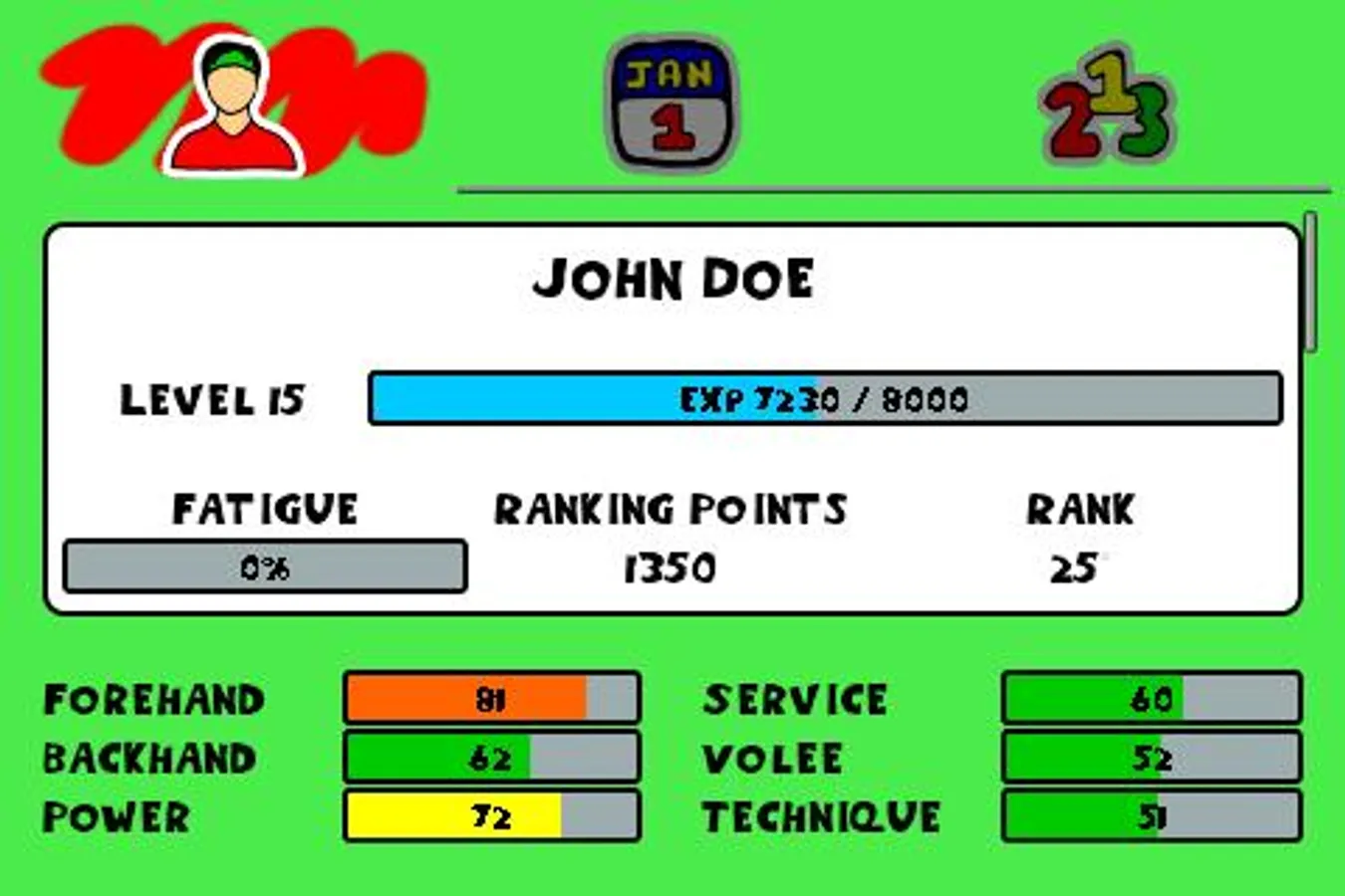 In this management game you can create your own player and decide how to make him grow, to rise to the top of the ranking!