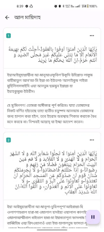 যে সকল সূরার বাংলা উচ্চারণ, অর্থ ও অডিও ফাইল সহ তাফসির দেয়া হয়েছে