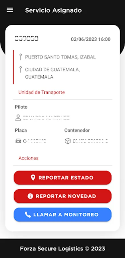 Application that allows the pilots of the transport units of Forza Secure Logistics clients to manage their assigned services.