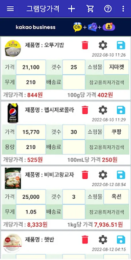 - You can use the unit price calculation function, shopping cart list creation, and calculation function in one app.