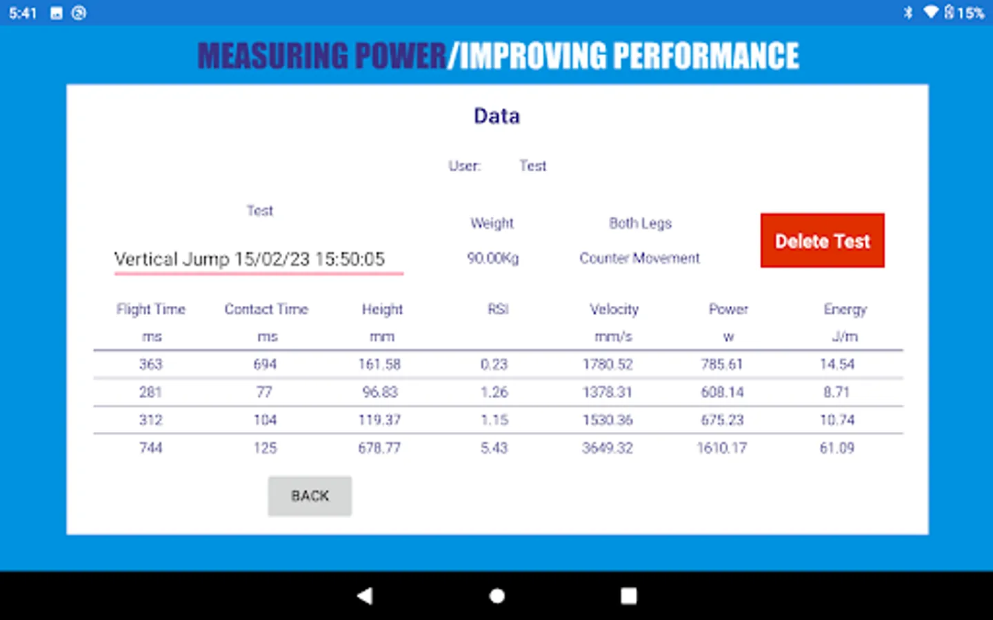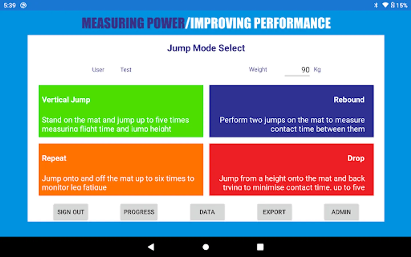 Athletes can create their own password protected user accounts, where they can test and store data for review, or export data in order for them to conduct tailored in-depth analysis.