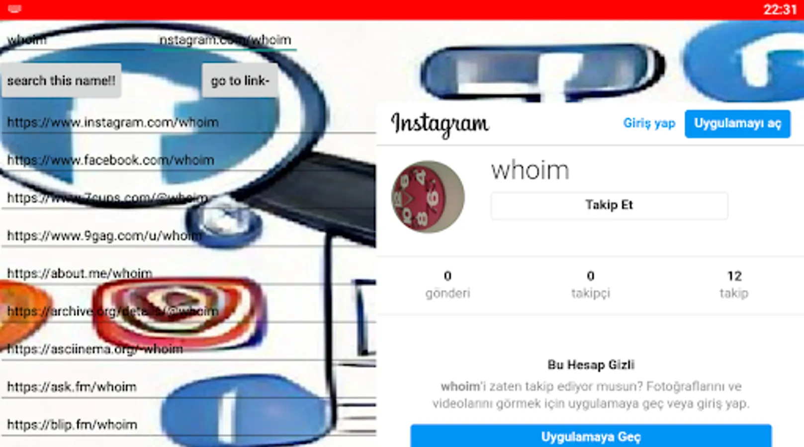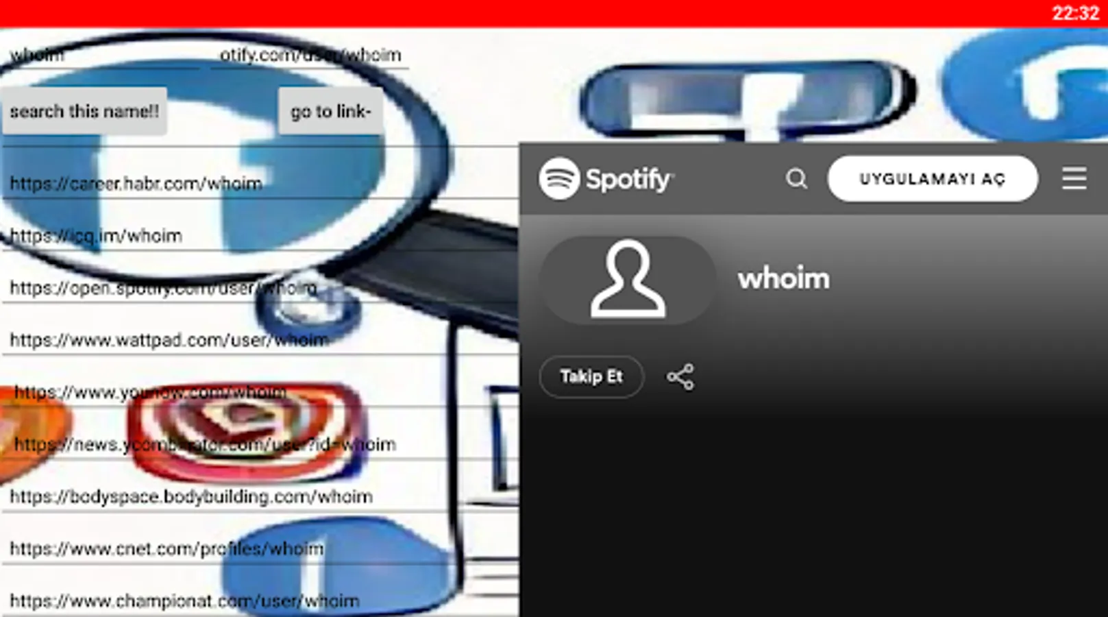 Finding social media accounts conveniently by name.