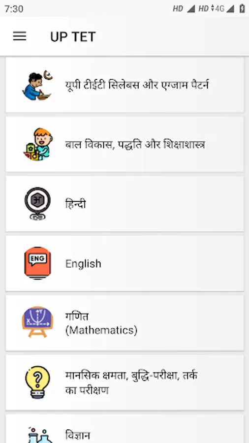 UPTET preparation app includes the following topics :