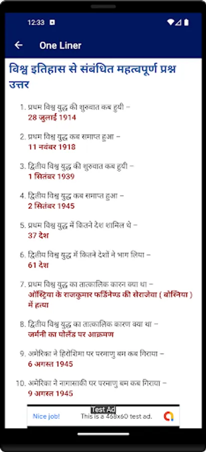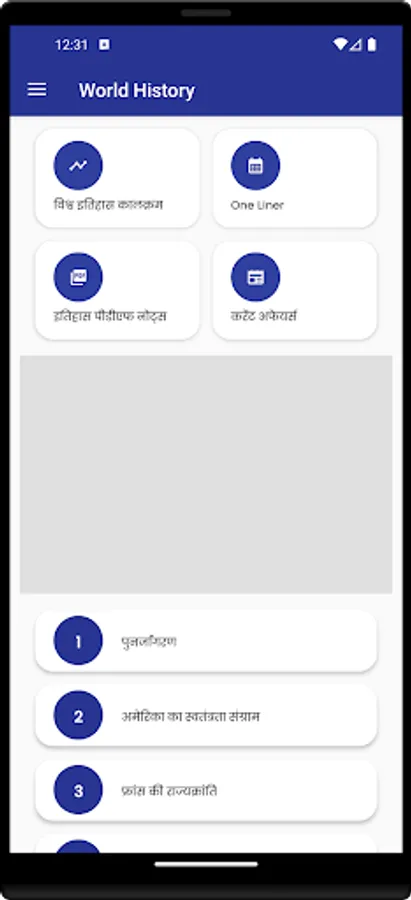 Unlock the door to historical excellence with "World History in Hindi." Our app empowers you with in-depth historical insights, precise information, and a vast array of historical events, all presented in Hindi to facilitate your learning process.