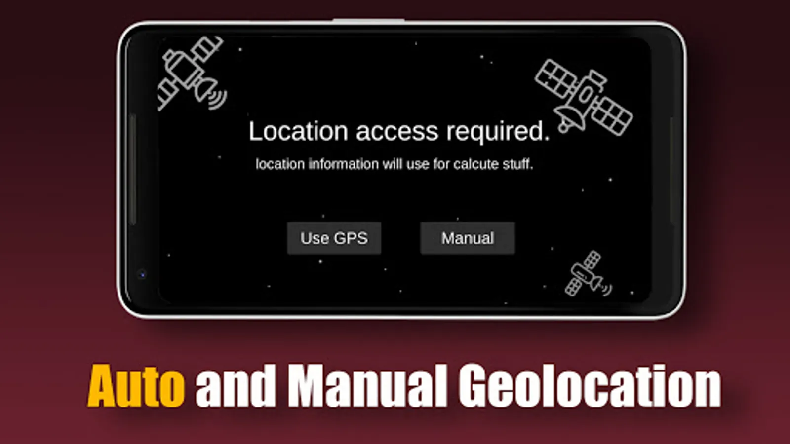 ⦁ Auto location finder (also you can manualy add your location)