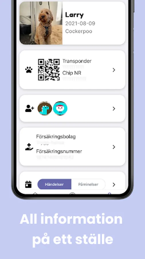 Doogy helps you document events in the dog's everyday life so you have an overview of activities, greater opportunity to follow up changes and details regarding the dog's health and development.