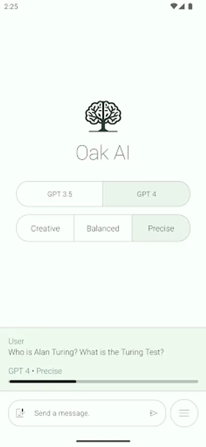 Oak AI is a pay-per-use chat based AI app that allows you to use GPT 3.5 and GPT 4 models on both your Android and Wear OS devices, offering elegant and simple layouts, satisfying user experience.