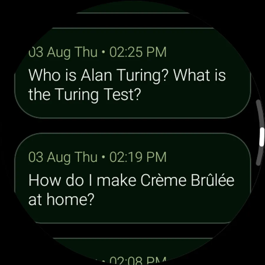 You can access your conversation history saved in the cloud with your Google account whenever you want from any of your Android (Phone, Tablet, Chromebook) and Wear OS (Smartwatch) devices.