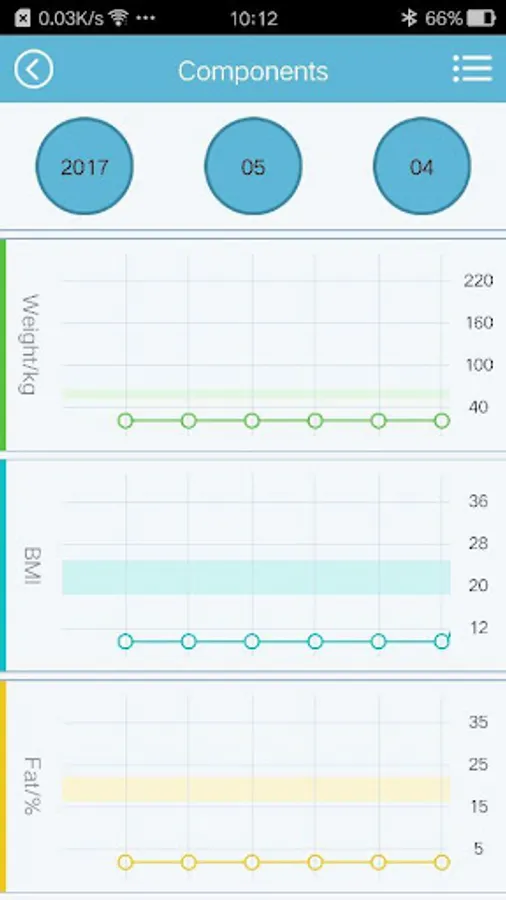 5.Click the "Component" button; you can check Human body composition curve chat of your measurement result.