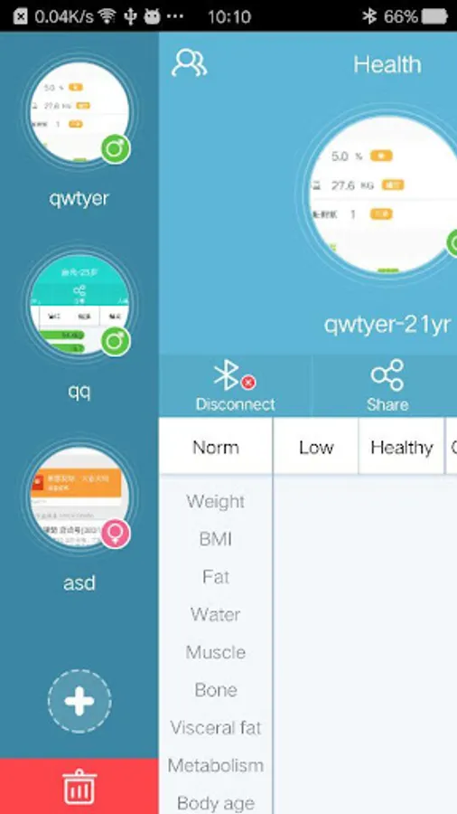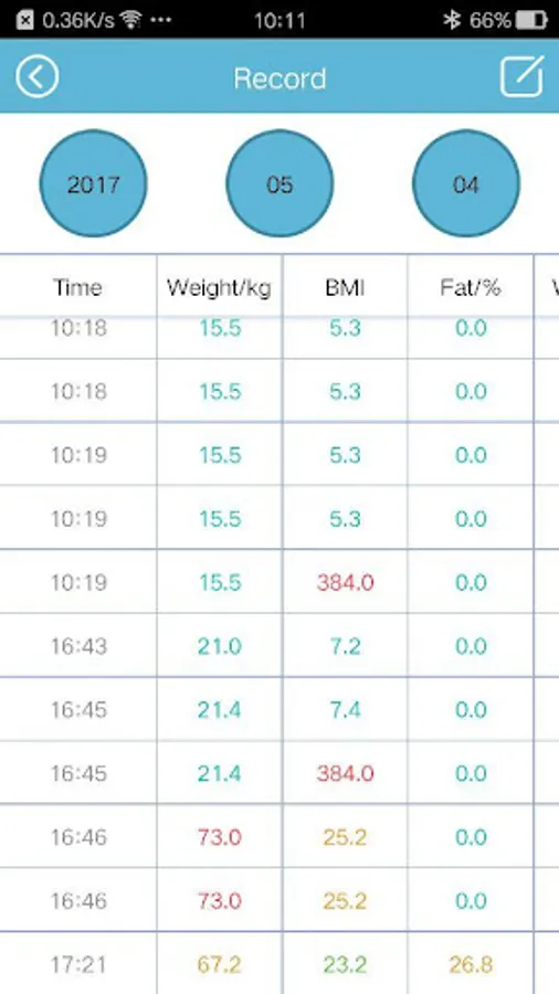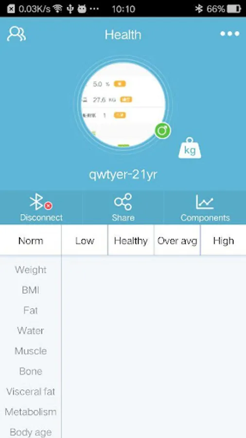 4.When the digital data is locked and flash, the app will receive the data from the Bluetooth body fat scale and show all user measurement result.