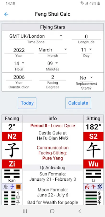 The Feng Shui Professional Calc application has been redesigned from the beginning and has all the essential tools needed by a consultant or home user.