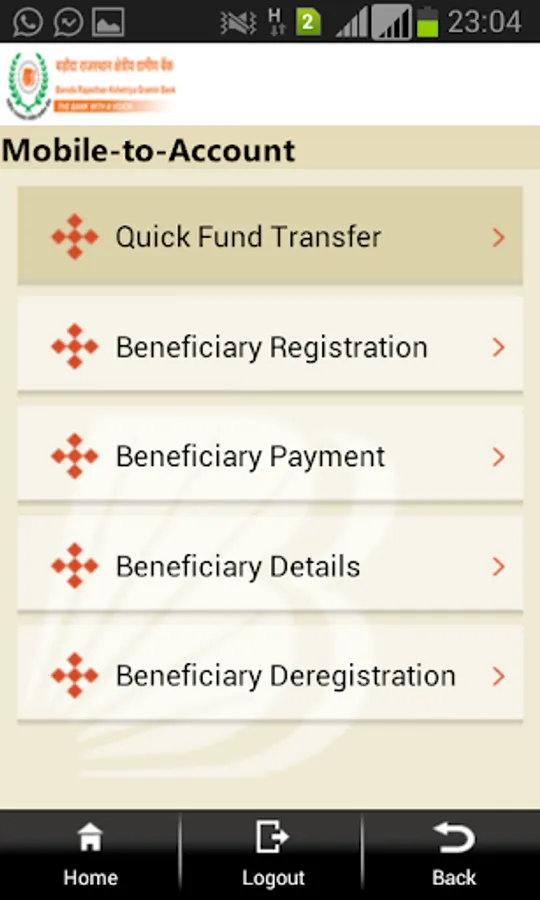Funds transfer to other Bank accounts through IMPS and NEFT.