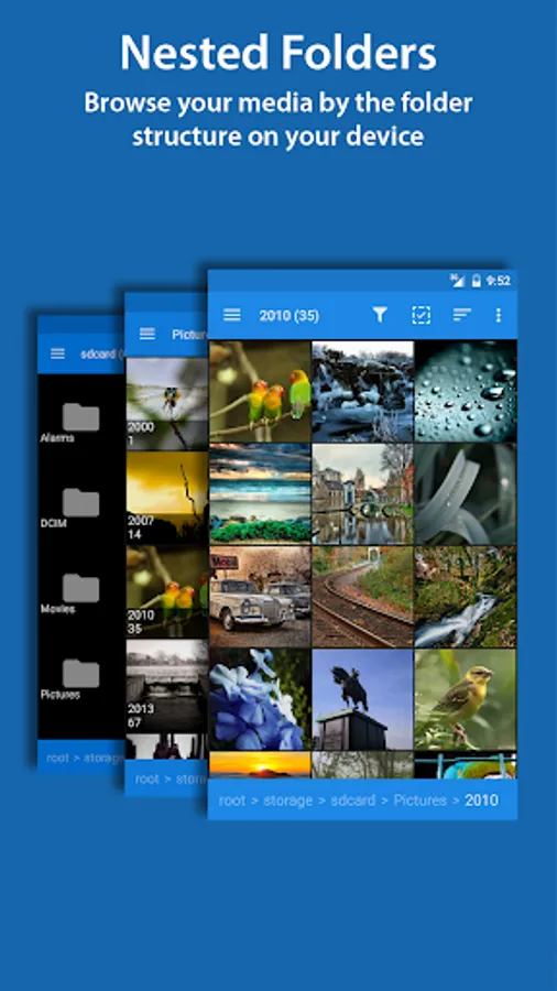 NESTED FOLDERS Browse your media by the folder structure on your device. Very convenient if you organize your media by folders.