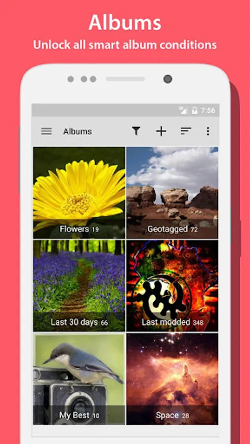 SMART ALBUMS Unlock all smart album conditions such as: Number of Tags, Orientation, Media Type, Extension, File Name, Size and any future additions.
