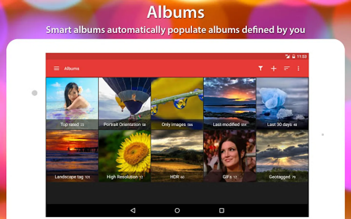 • Nested folders[1] let you browse your media using the folder structure (explorer view) instead of the typical flat view seen in most gallery apps