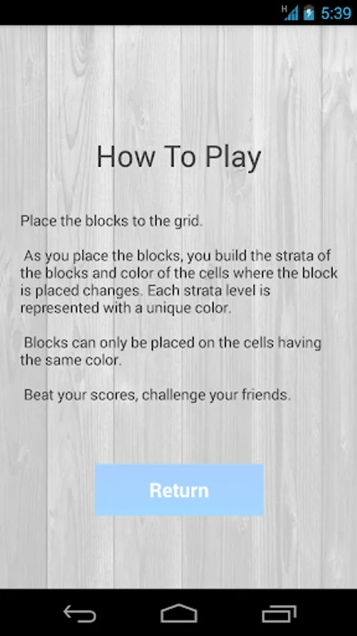 As you place a block, you build the strata of the blocks and color of the cells where the block is placed changes. A block can only be placed on the cells having the same color.