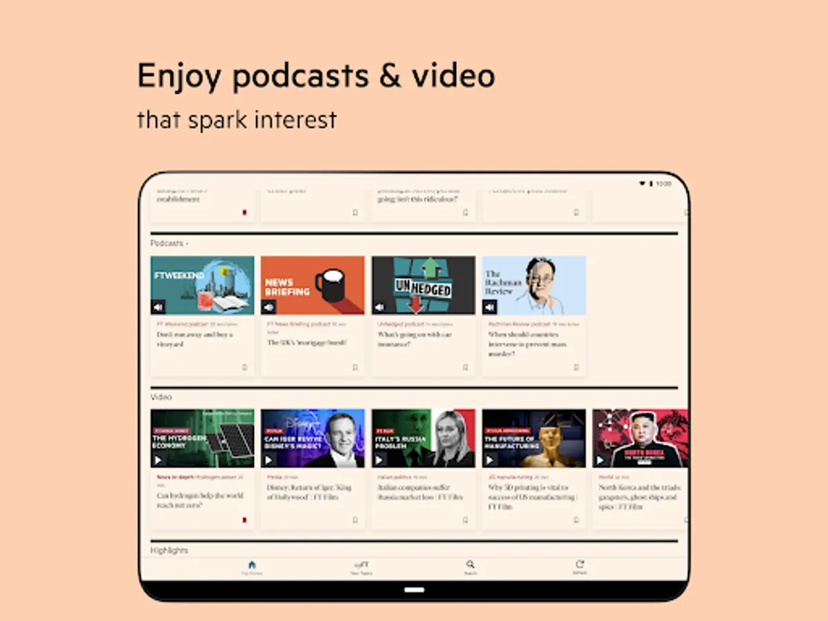 • Browse and listen to FT podcasts including News Briefing, Behind the Money, Political Fix, FT Weekend and Unhedged podcast