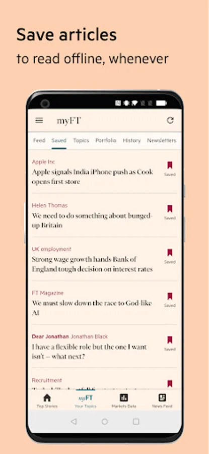 • Save articles to read later, even when you're offline