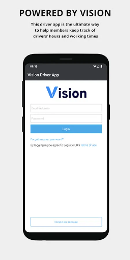 Please note that in order to use the Vision Driver App your company will need a Tacho contract with Logistics UK. You can then register for free once you've downloaded the app.