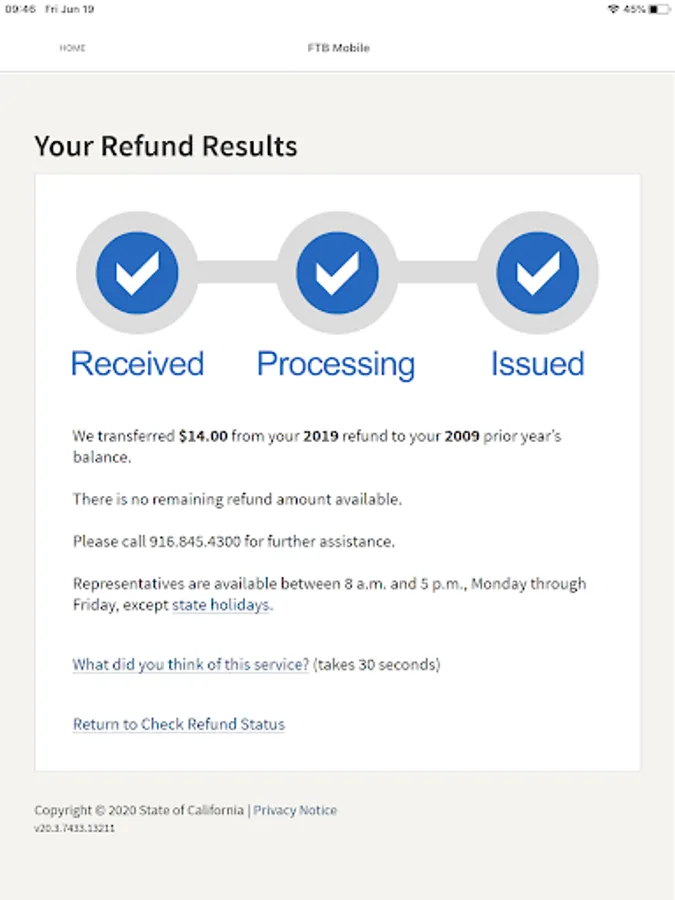 Check the refund status of your California state income tax return.