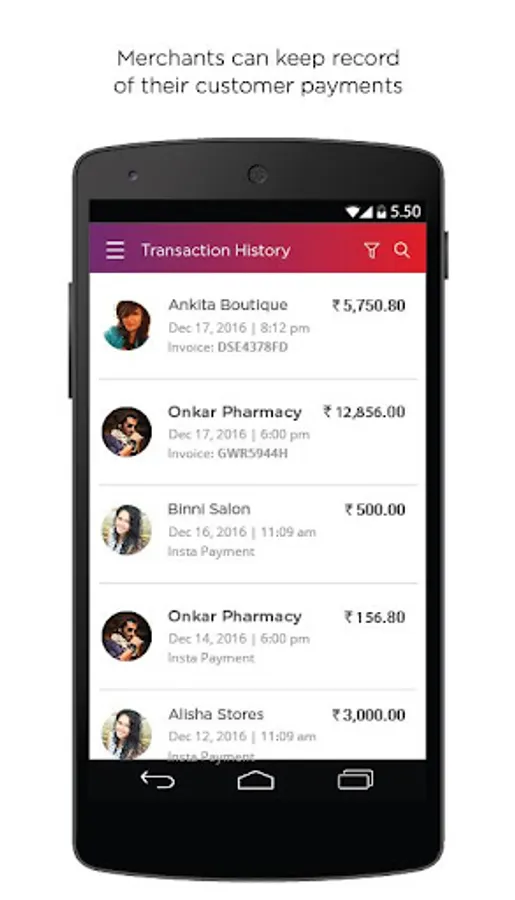 - Merchants can send invoices to customers for payments and then keep track of all pending payments