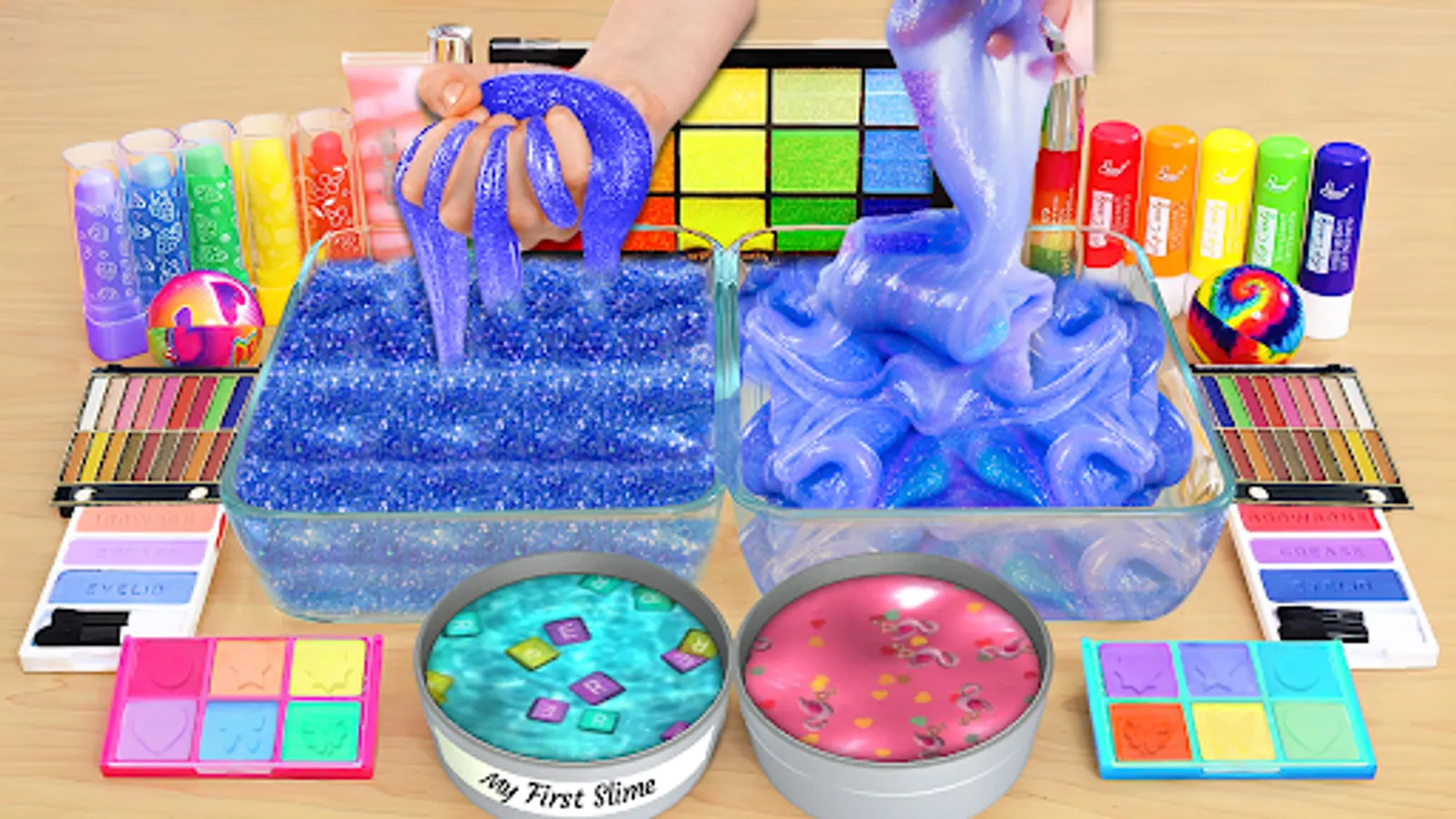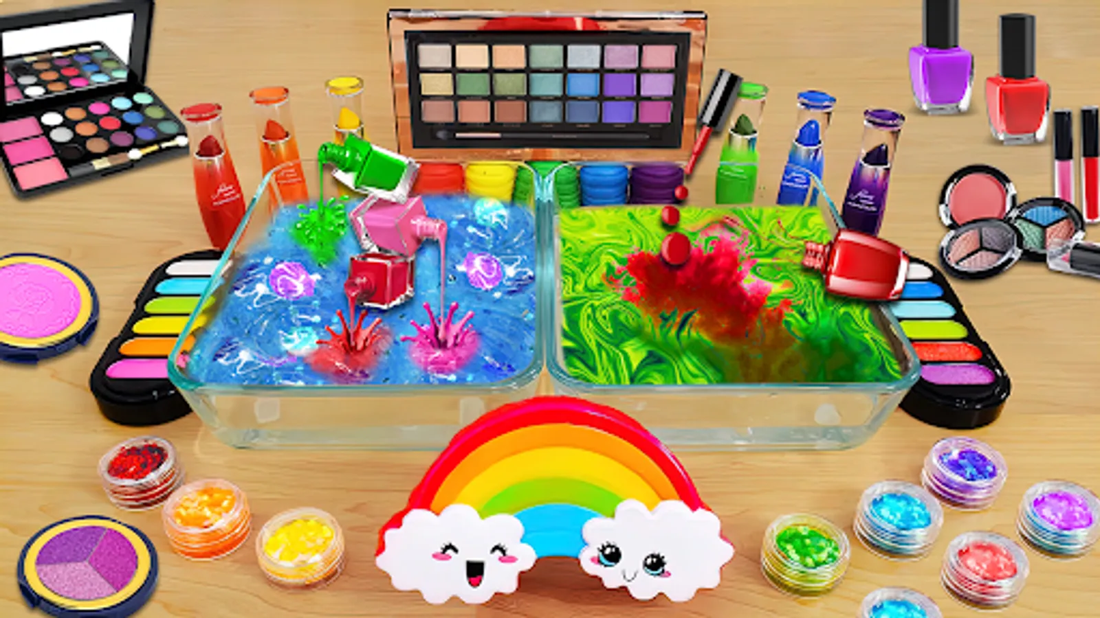 • Mixing makeup into slime is very satisfying activity.