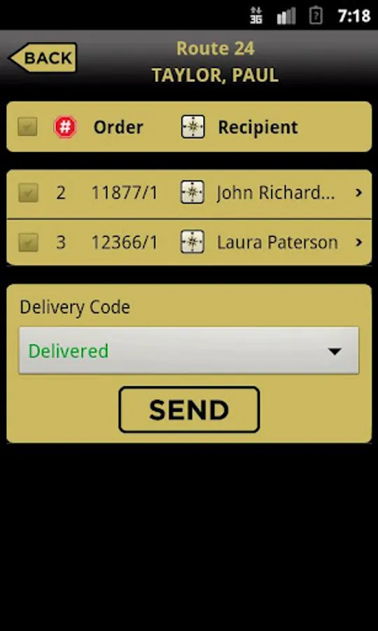 • Delivery Routes: See routes, stops, and orders and mark them delivered.