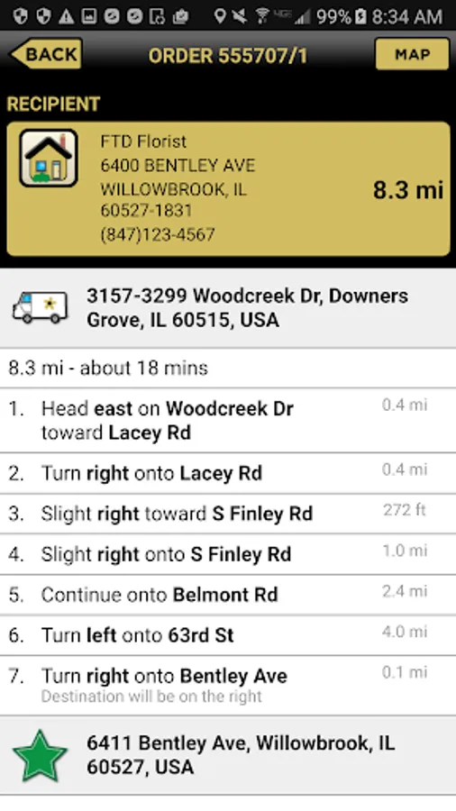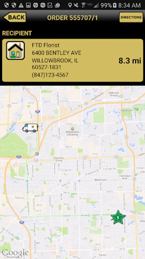 • Map and Directions: View a map of the current truck and recipient locations, plus get turn-by-turn directions.
