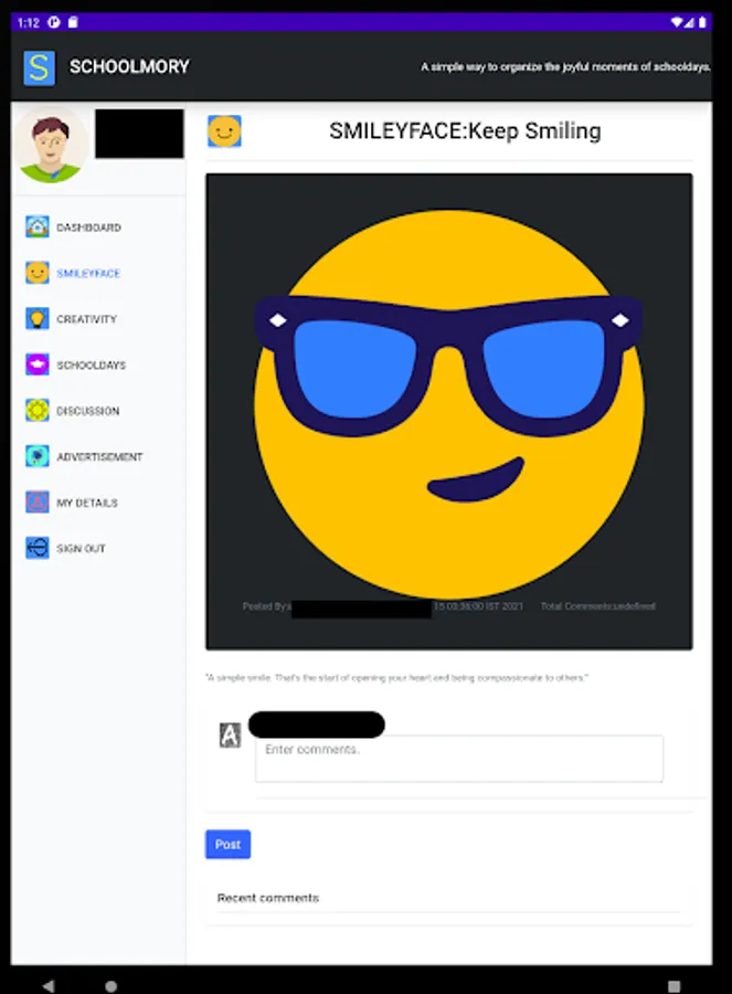 Student, Parent & Teacher can upload and share the images of their smileyface.