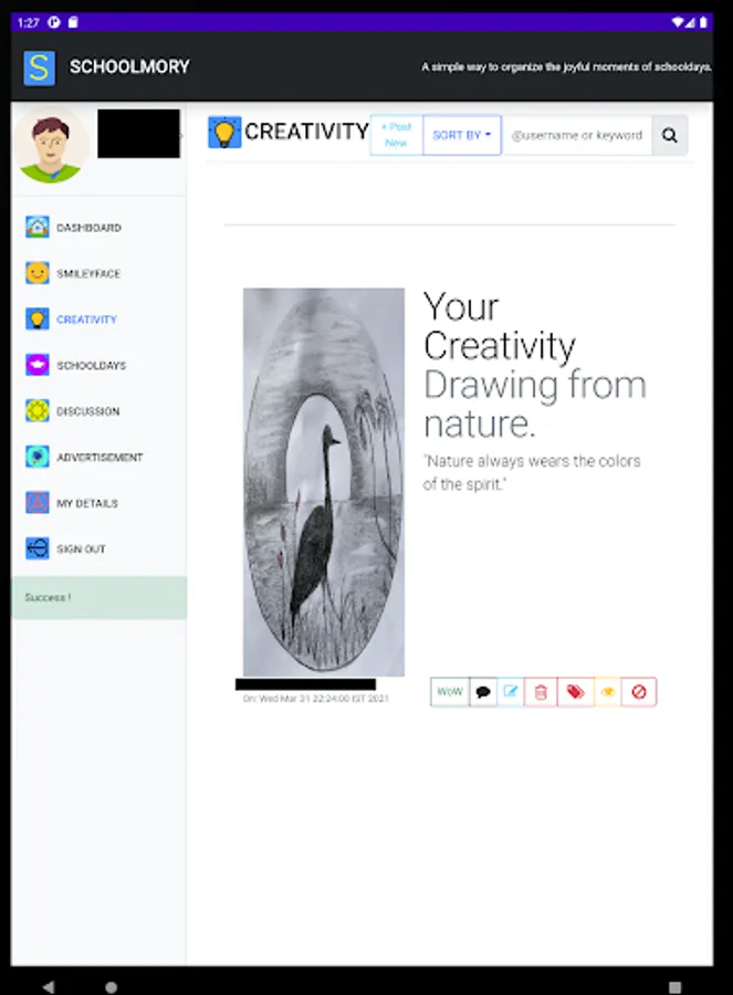 Schoolmory helps students, parents & teachers organize and engage in the joyful moments of schooldays with an internet community.